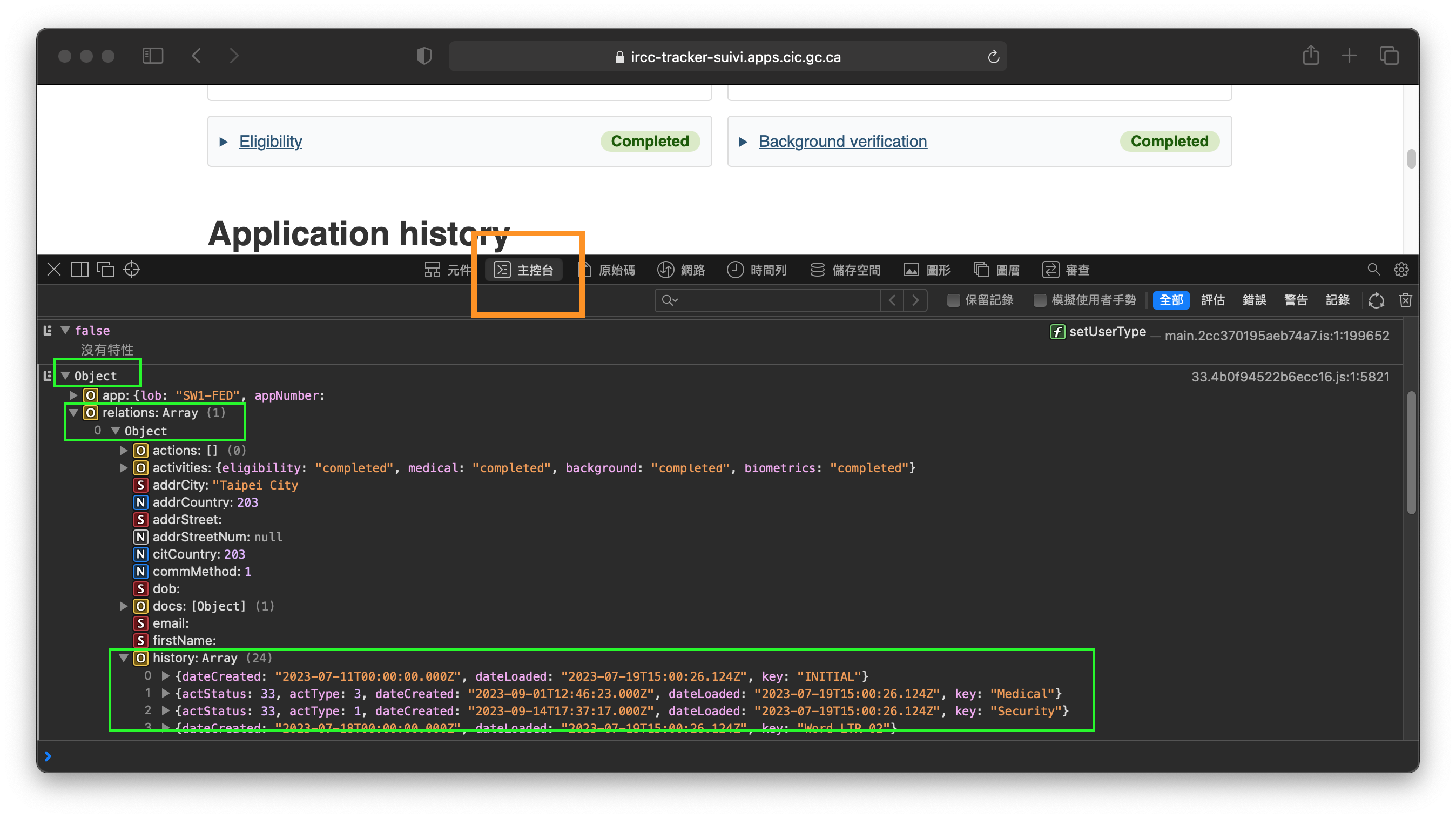 申請細節:四大審核項目,包含「生物辨識、體檢、移民資格、背景調查」,系統中會分別顯示各項是否完成。